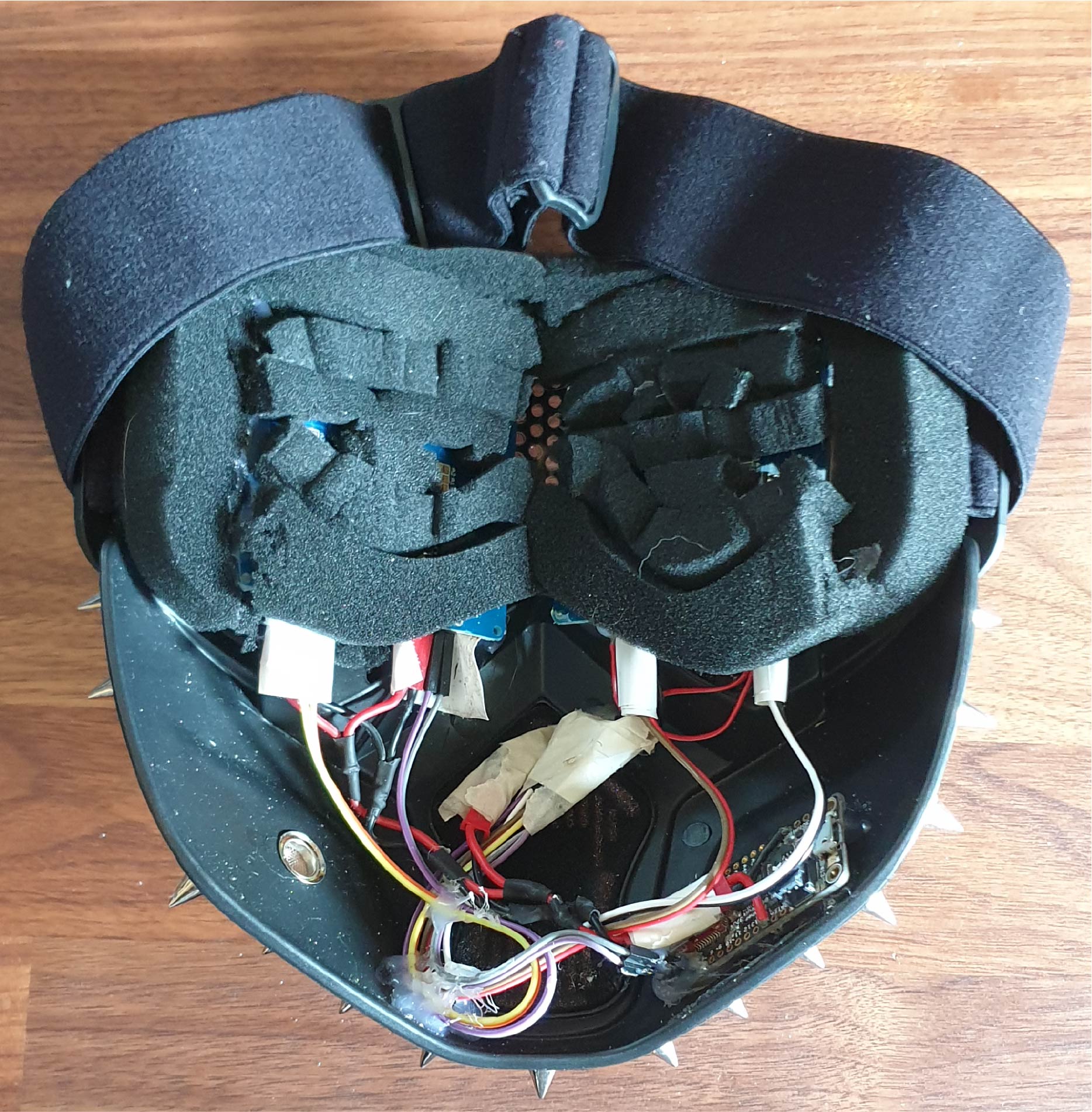 of the cheeks of the mask and foam was hot glued onto the back fo